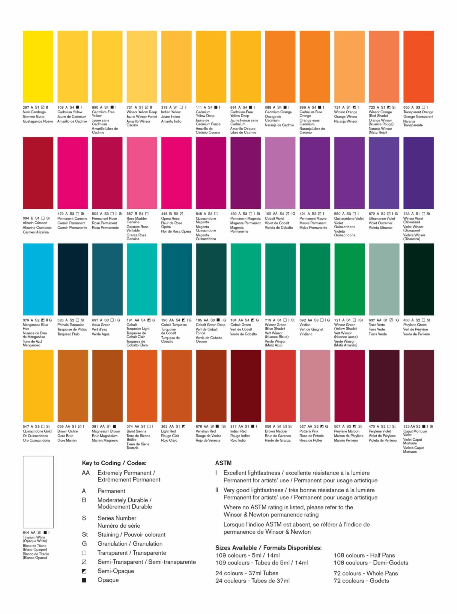 - Les couleurs de la gamme aquarelle 15 ml de Winsor et Newton possèdent des propriétés propres à chaque nuance. Que ce soit en matière de résistance à la lumière, d’opacité, de coloration de granulation.