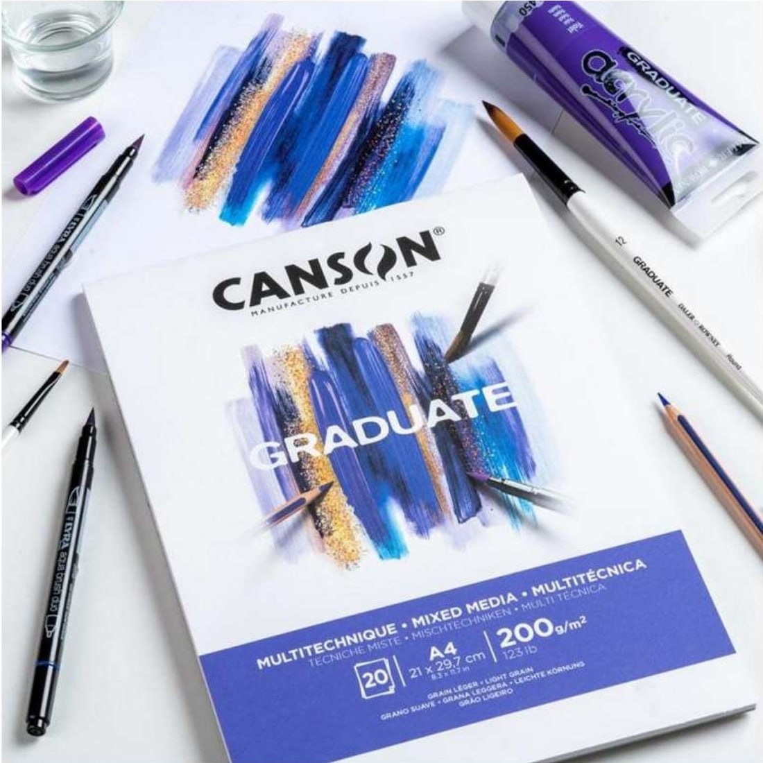 Les blocs Mixed Media Graduate de Canson sont extrêmement polyvalents, adaptés à une large gamme de techniques artistiques. Que vous préfériez l’aquarelle, l’acrylique, le fusain, le pastel, ou les marqueurs, ce papier est conçu pour répondre à vos besoins créatifs. Les différents formats disponibles (A3, A4, A5) permettent une grande flexibilité, que vous travailliez sur de grands projets ou de petits croquis. Les artistes peuvent expérimenter librement, sachant que le papier supportera diverses applications de médiums humides et secs sans se déformer ni se détériorer.