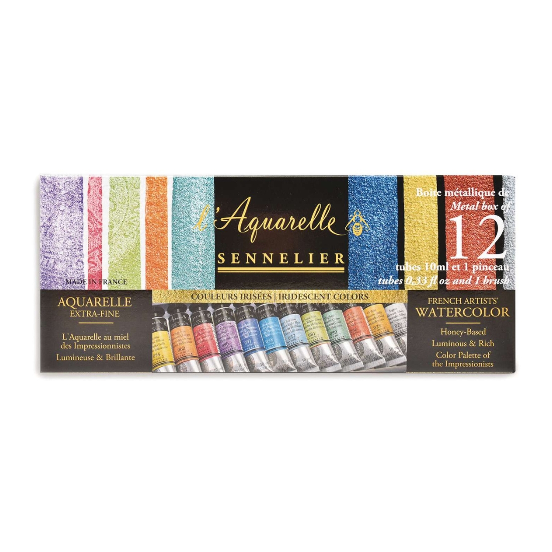 - Composition de la boîte de 12 tubes de 10ml d’aquarelle irisée Sennelier :