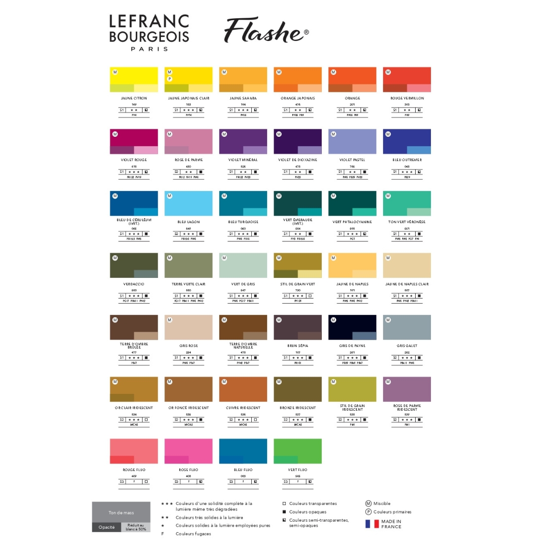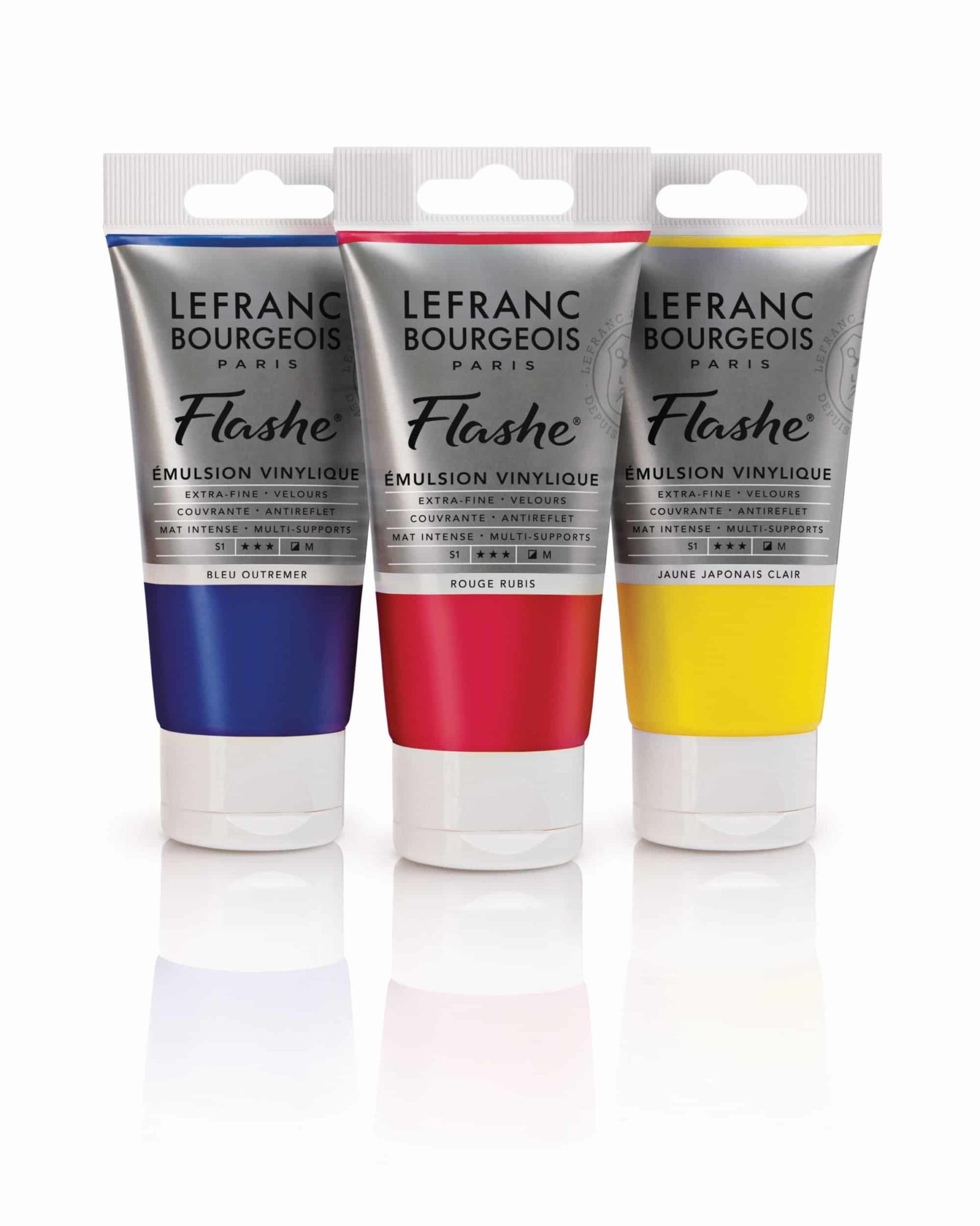 - La nouvelle gamme de la peinture Flashe émulsion vinylique de chez LEFRANC BOURGEOIS à un rendu vraiment bien homogène permet d’obtenir des effets surprenants pour les amateurs de peinture en pâte. Le peintre peut créer, s’exprimer et retrouver ainsi le plaisir de peindre.