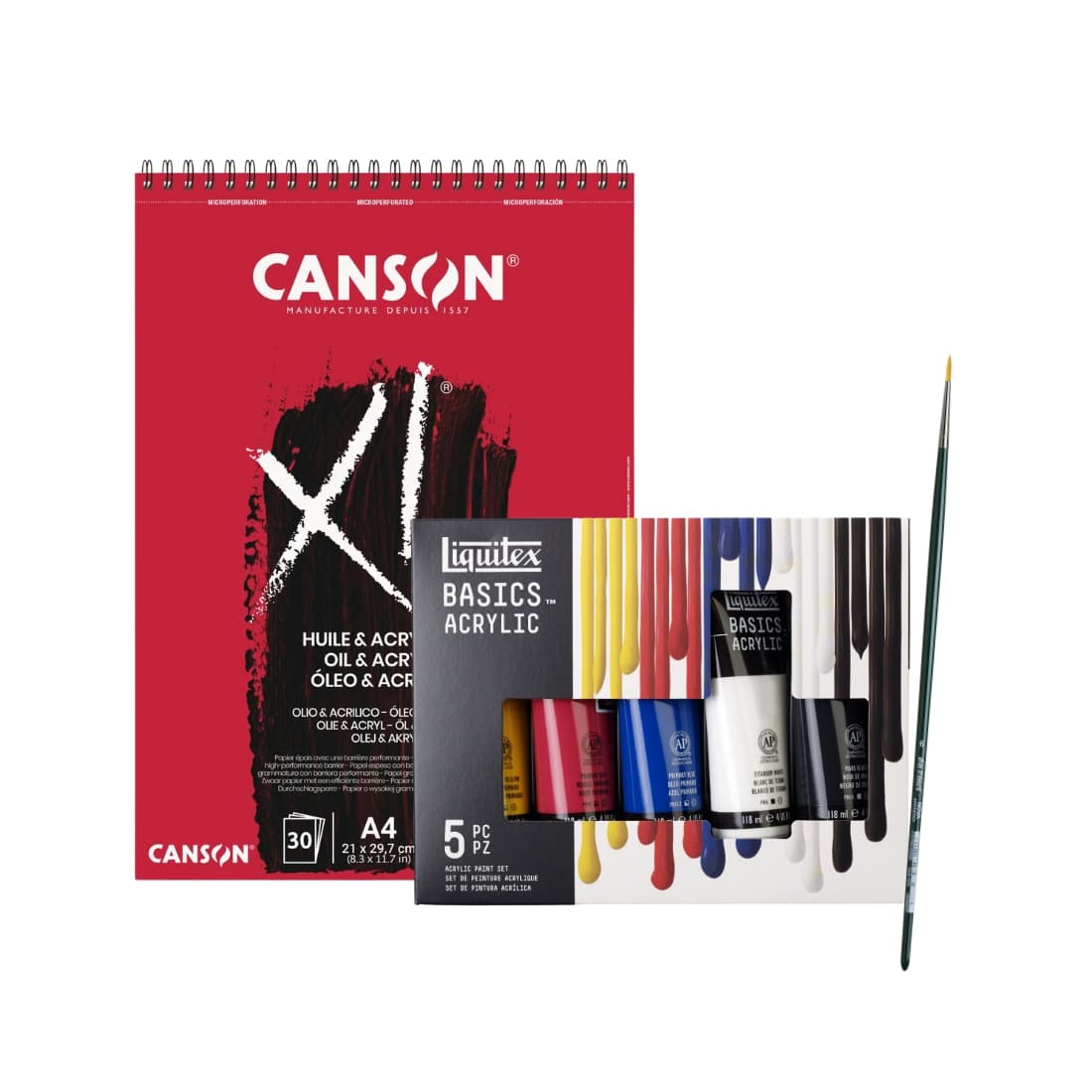 Ce kit est parfait pour les débutants souhaitant se lancer dans l’acrylique. Les peinture acryliques Liquitex offrent une variété de couleurs prêtes à l’emploi, tandis que le carnet Canson XL offre une surface idéale pour expérimenter. Le pinceau rond Nova de Da Vinci est parfait pour les détails fins et les traits précis.