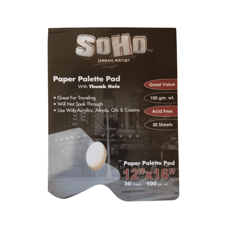 Palette pelable de la marque SOHO pour huile et l’acrylique. La palette pelable Soho est le résultat d’une fabrication méticuleuse et de qualité supérieure. Chaque palette est conçue avec soin pour offrir une expérience artistique exceptionnelle. Les feuilles détachables sont fabriquées à partir de papier de haute qualité, choisi pour sa texture lisse et sa résistance aux différentes techniques artistiques. La conception de la palette assure une stabilité optimale pour une utilisation aisée, que vous soyez un amateur passionné ou un professionnel exigeant.