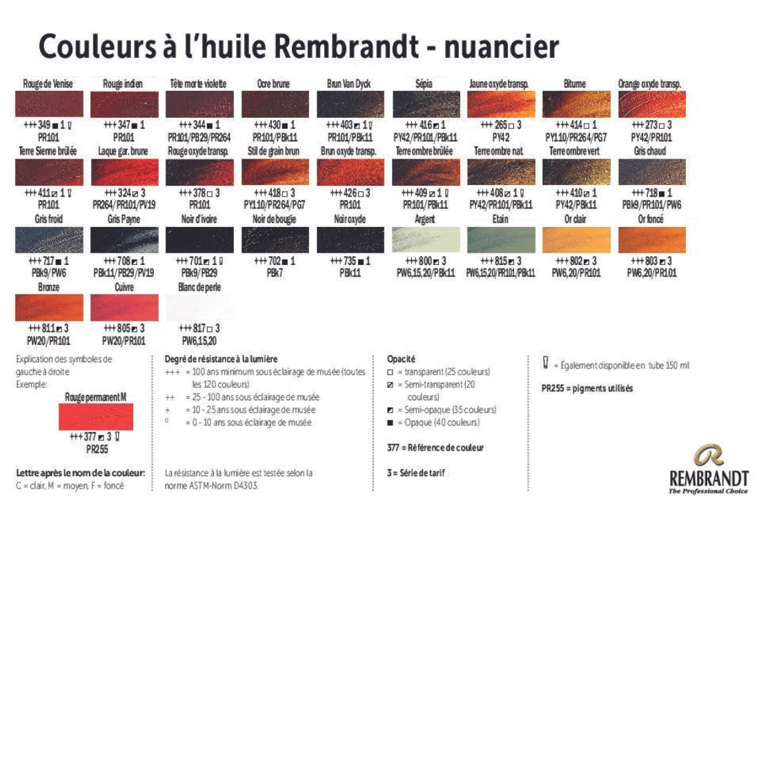 La peinture à l’huile extra fine Rembrandt est conçue pour répondre aux exigences des artistes professionnels et passionnés. Son pouvoir couvrant exceptionnel, sa stabilité chromatique et sa miscibilité en font un choix polyvalent pour créer des œuvres d’art durables sur divers supports.