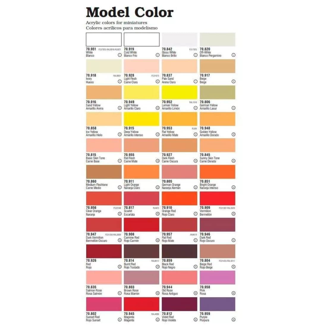 La gamme Model Color est spécialement conçue pour peindre des figurines et des miniatures en plastique, métal ou résine. Grâce à leur grande adhérence et leur pouvoir couvrant, elles s’appliquent facilement avec un pinceau fin pour des détails nets et précis. Ces peintures se mélangent aisément entre elles, permettant de créer des nuances personnalisées. L’acrylique peut aussi être dilué pour des effets de glacis ou de lavis, augmentant la polyvalence de la gamme.
