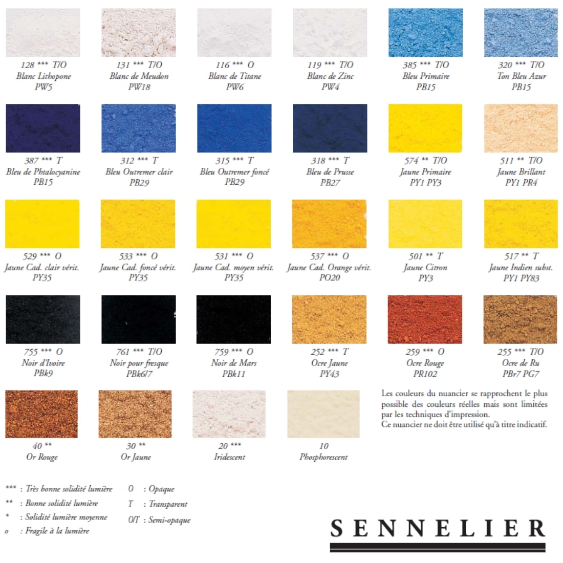 Chaque flacon est conçu pour préserver la qualité et la pureté des pigments, tout en offrant une facilité d’utilisation. Le poids des pigments peut varier selon leur densité et leur composition chimique, mais tous garantissent une intensité chromatique exceptionnelle et une excellente tenue dans le temps. Sennelier, qui a collaboré avec des artistes tels que Cézanne et Picasso, perpétue son héritage d’excellence à travers cette gamme.