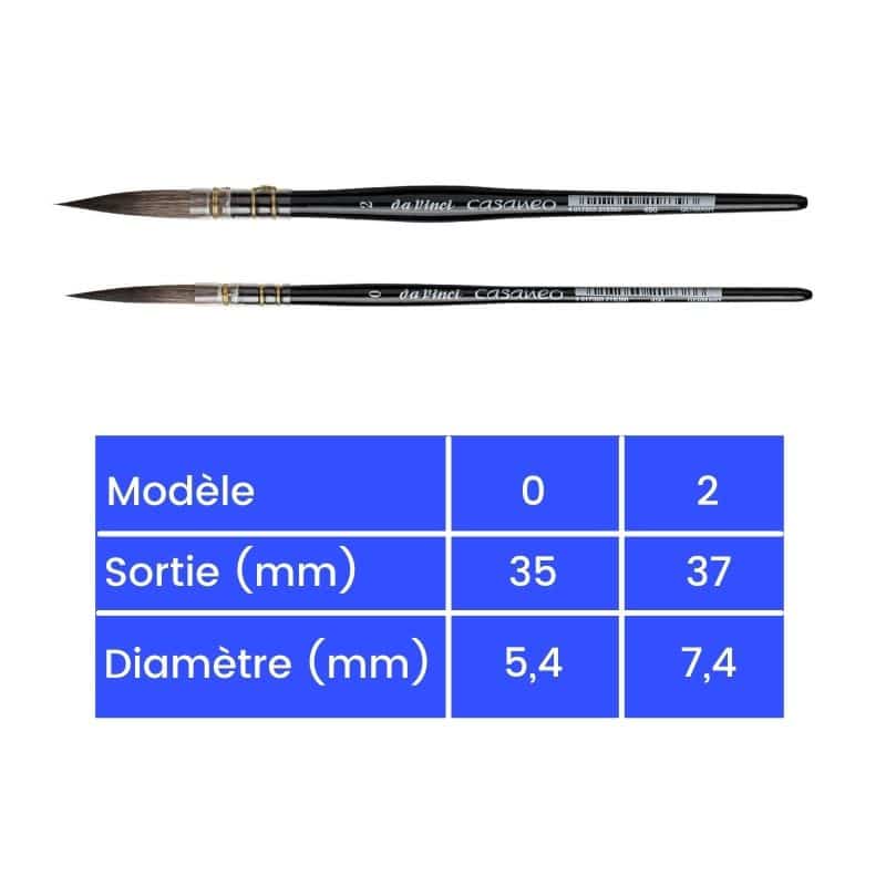 Le pinceau à lavis long Casaneo série 490 Da Vinci se décline en deux tailles différentes :