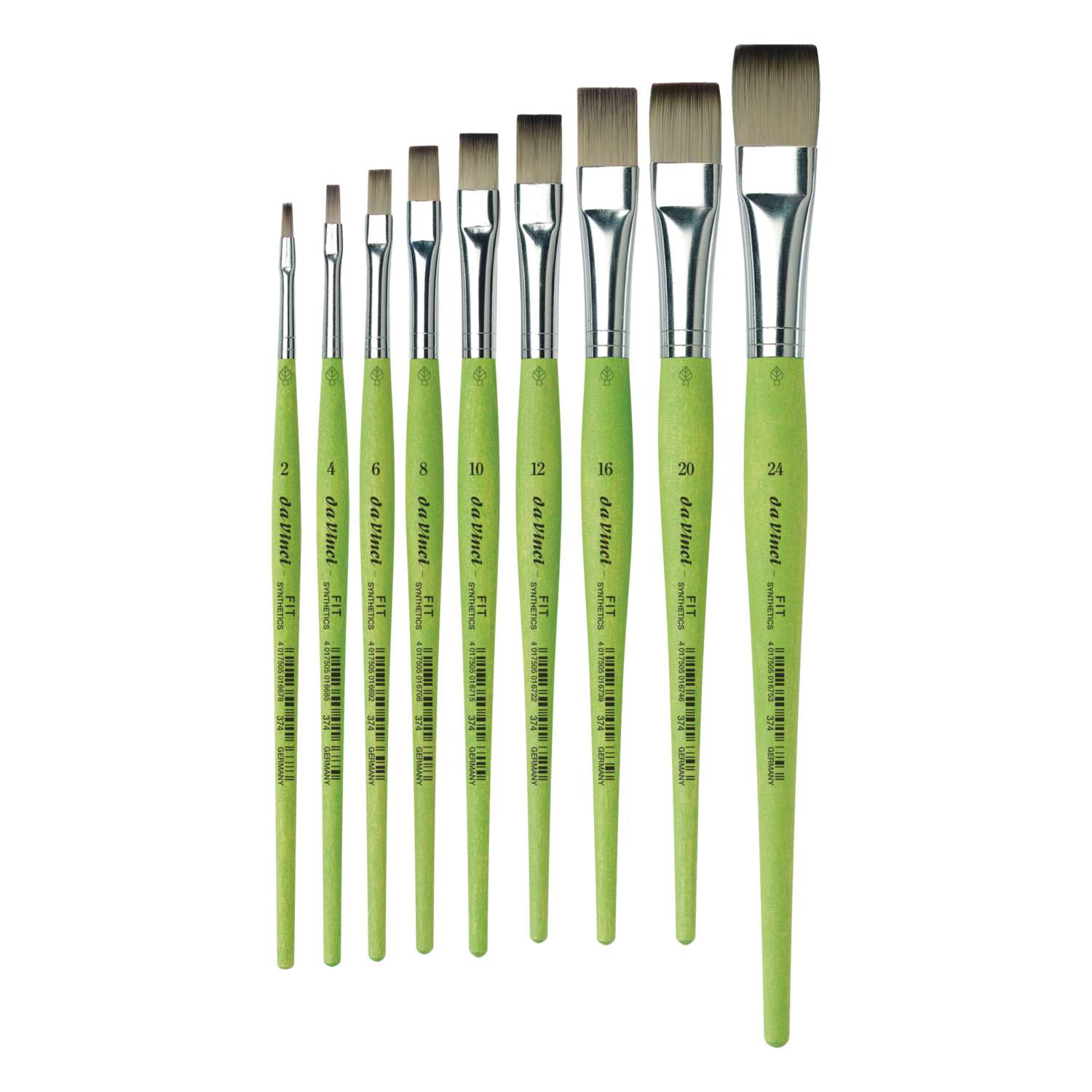 Le pinceau plat Fit Synthetics Série 374 de Da Vinci offre l’équilibre parfait entre performance et polyvalence. Avec une fabrication allemande d’excellence, une composition de fibres synthétiques performantes, une utilisation polyvalente pour différents médiums, des éléments pertinents pour une prise en main confortable, ce pinceau plat répond aux attentes élevées des artistes. Choisissez Da Vinci pour un pinceau plat qui vous accompagne dans la réalisation de vos œuvres artistiques avec précision et facilité.