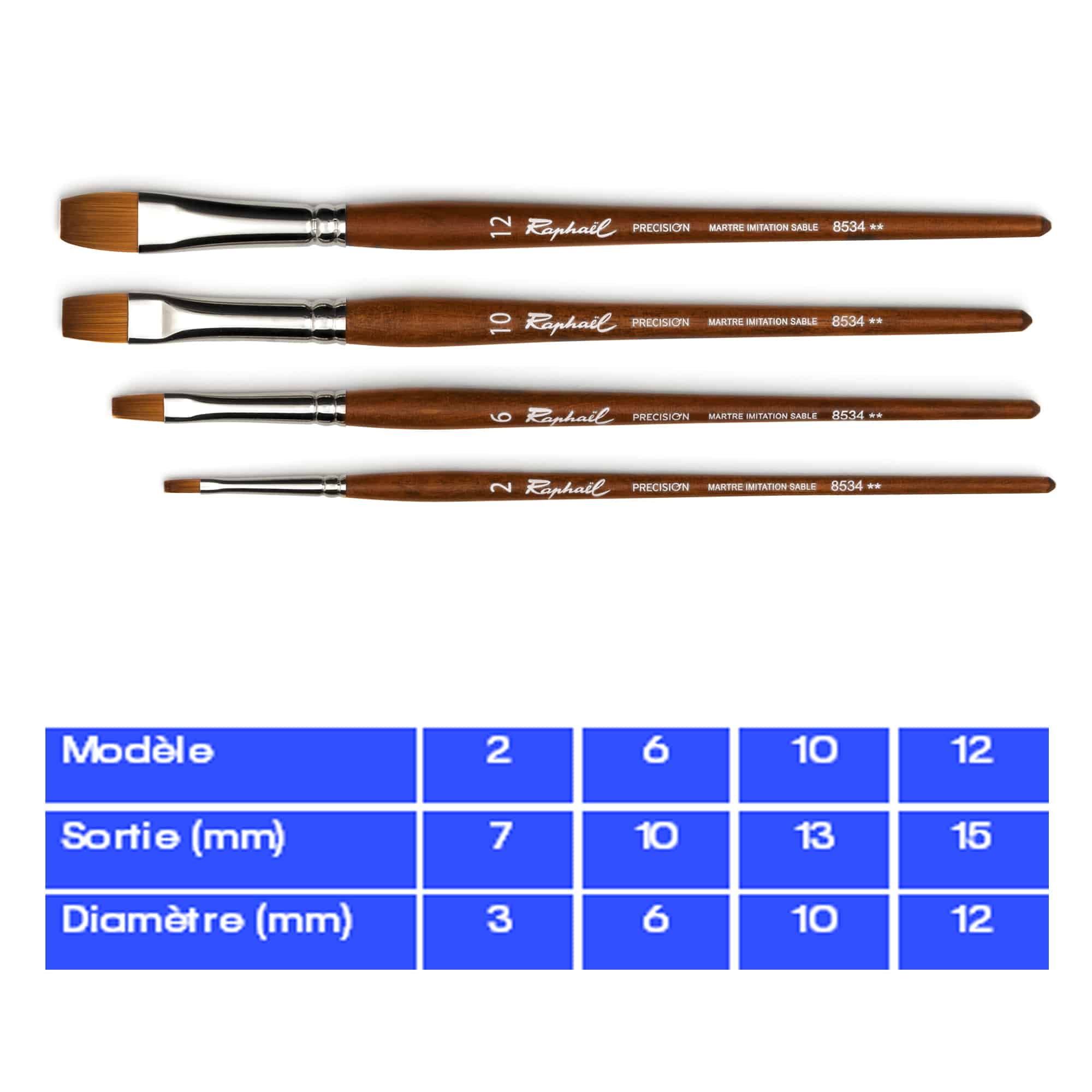 La série de pinceaux 8534 a plusieurs tailles :