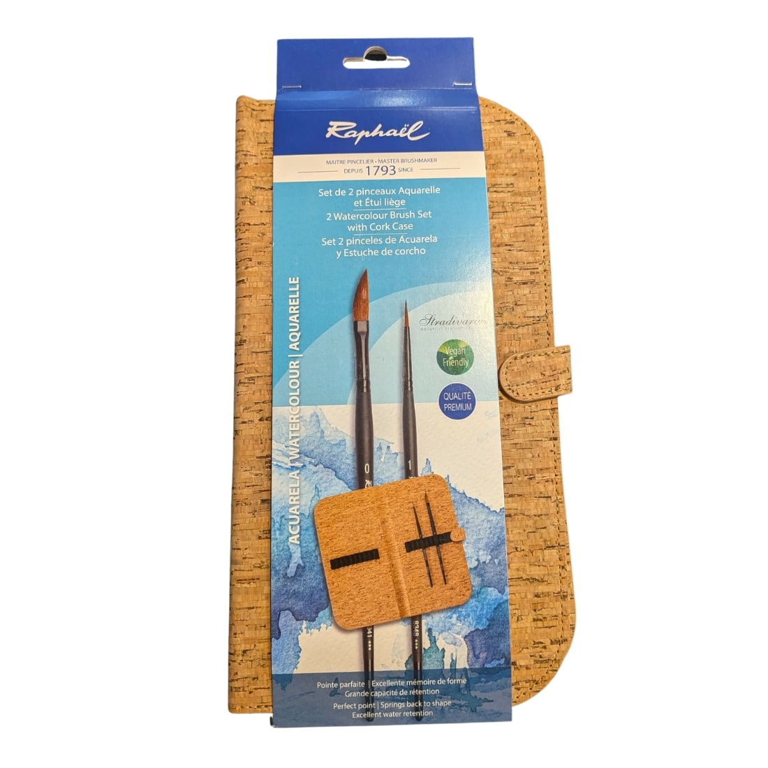 Les sets de pinceaux aquarelle Raphaël Softaqua et Stradivarius sont conçus avec le savoir-faire reconnu de la marque, alliant innovation et qualité professionnelle. Les fibres synthétiques utilisées reproduisent fidèlement les performances des poils naturels tout en offrant une excellente résistance. L’ensemble est accompagné d’un étui en liège de Méditerranée, un matériau 100 % naturel, écologique et durable, pensé pour protéger et transporter vos pinceaux en toute sécurité.