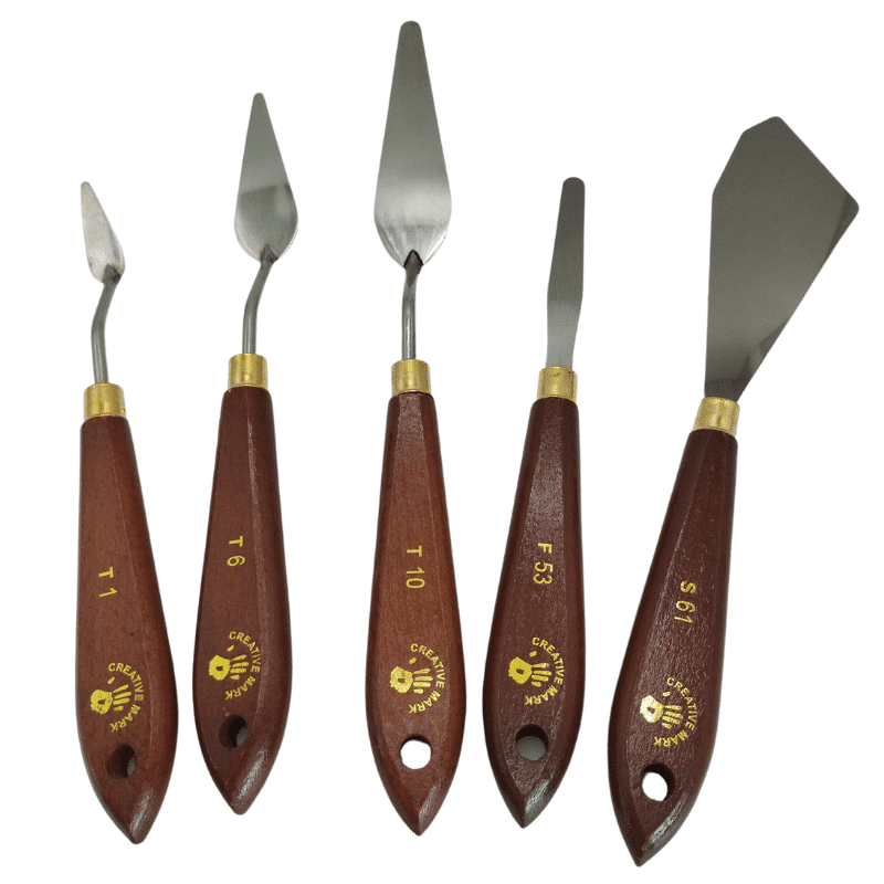 Ce set de couteaux à peindre Lot E est polyvalent et convient à diverses applications artistiques. Ils sont parfaits pour mélanger, gratter, étaler, ou créer des effets spatiaux dans vos peintures. Les différentes formes des couteaux offrent une variété d’options pour vos projets artistiques. Que vous soyez un artiste professionnel ou un amateur passionné, ces couteaux sont un atout précieux pour votre boîte à outils artistiques.